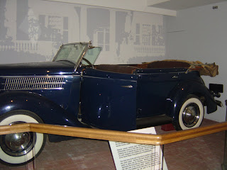 This is Roosevelts car. The car has special equipment so he was able to drive without the use of his legs. He once took the Queen mom for a ride & she was quoted as saying the scariest thing she ever did was take a ride with Roosevelt. At the age of 39, he contracted polio. From then on he was never able to walk alone unaided. He got the virus from a boyscout outing in Bear Mt. At the time no one really knew about polio. Roosevelt led a sheltered life & wasn't exposed to the elements of Bear Mt.
